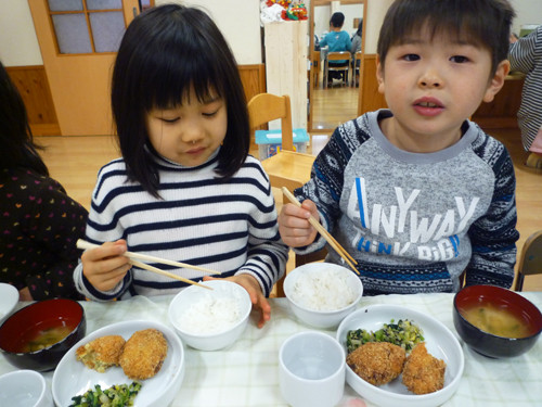 今日の給食(夏見台幼稚園・保育園)2017.3.15 コロッケ
