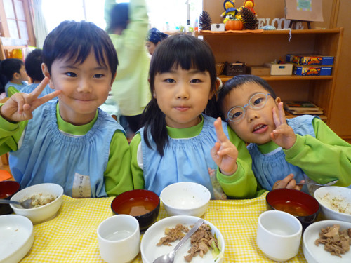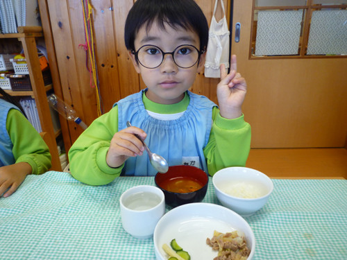 今日の給食(夏見台幼稚園・保育園)2017.10.30 豚の生姜焼き