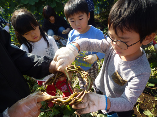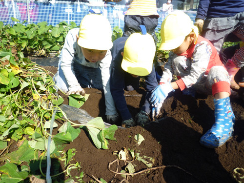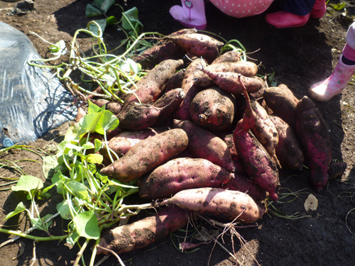 土の中に埋まっているさつま芋が次から次へと顔を出しました!