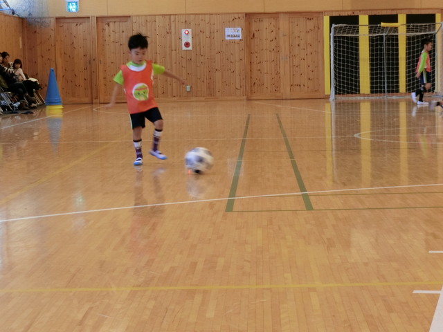 他のチームの子どもたちと試合をしている様子で、月曜日フットサルの子どもたちにも同様のものを観てもらいました。