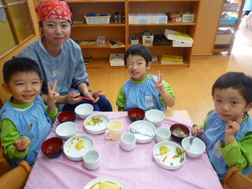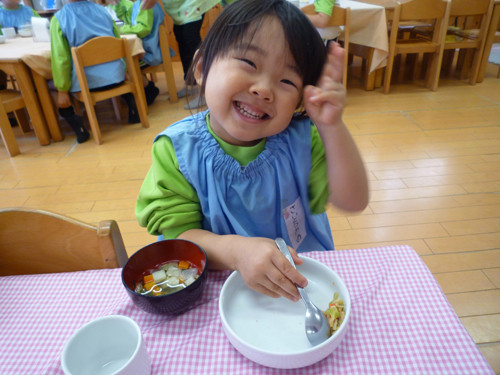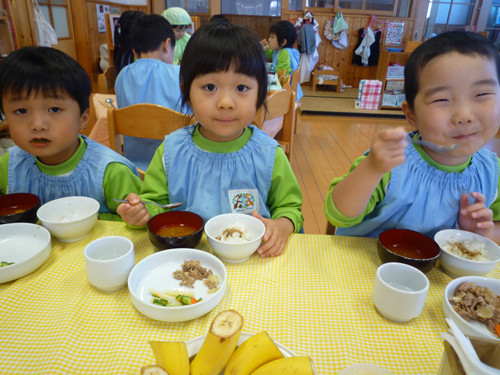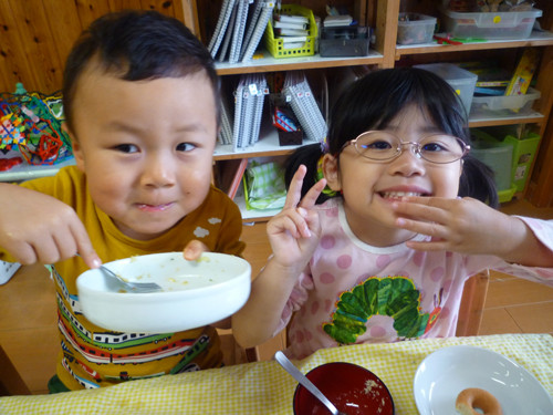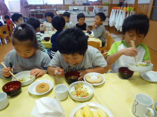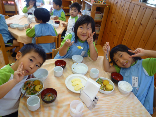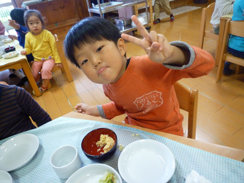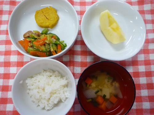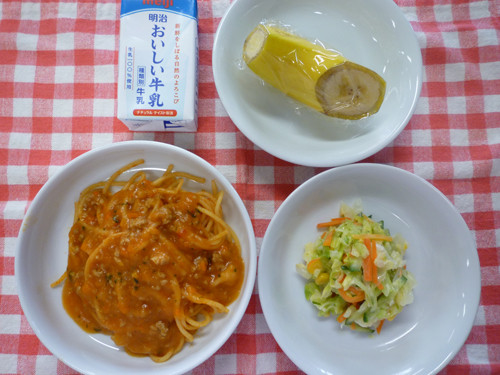 今日の給食(夏見台幼稚園・保育園)2017.10.27 スパゲティミートソース&芋ほり