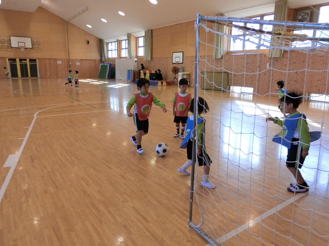 5分くらいでしたが、子どもたちはゴールが外れると「惜しい!!」や「入った!!」など自分たちで解説したり、知っている子がいると、その子に注目してみていたりと様々でした。