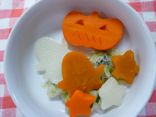 離乳食も、かぶ・かぼちゃ・人参を型どってハロウィン仕様にしてみました☆