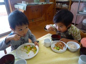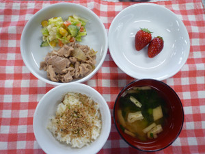 今日の給食(夏見台幼稚園・保育園)2018.3.13 生姜焼き