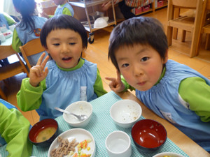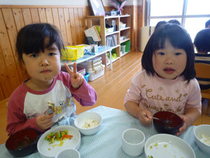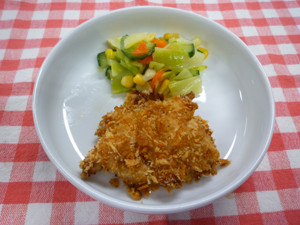 今日の給食(夏見台幼稚園・保育園)2018.3.8 フレーク焼き
