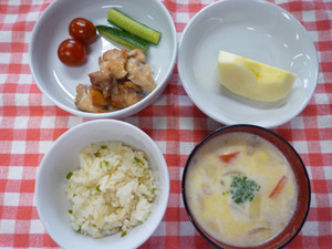 今日の給食(夏見台幼稚園・保育園)2018.3.15 鶏の塩焼き