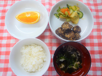 今日の給食(夏見台幼稚園・保育園)2018.6.25 鶏のオレンジ煮