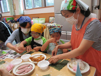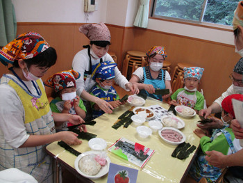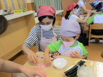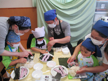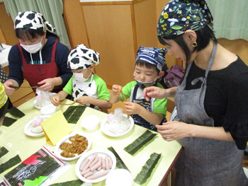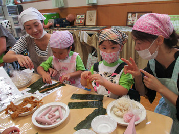 お母さん・お父さん・おばあちゃんと一緒に海苔巻き作り♪