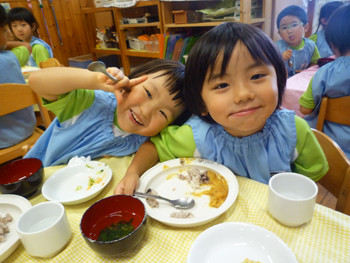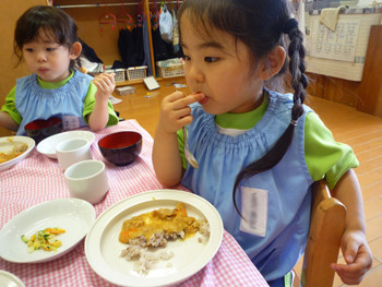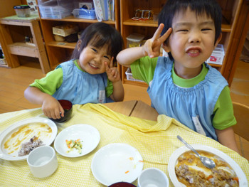 今日の給食(夏見台幼稚園・保育園)2018.6.18 カレー肉じゃが
