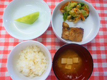 今日の給食(夏見台幼稚園・保育園)2018.6.19 さばのごまだれ焼き