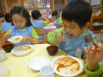 今日の給食(夏見台幼稚園・保育園)2018.6.20 スパゲティミートソース