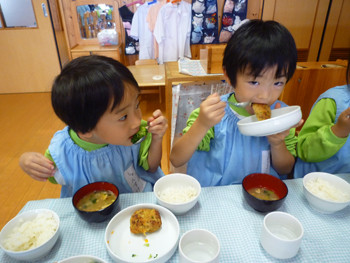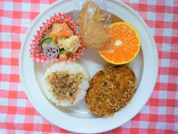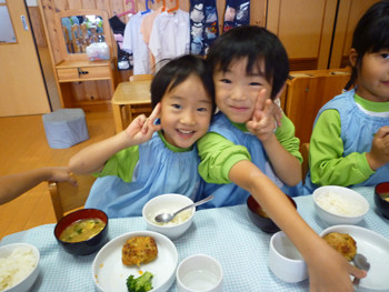 今日の給食(夏見台幼稚園・保育園)2018.10.25 チーズハンバーグ