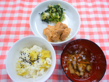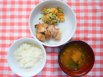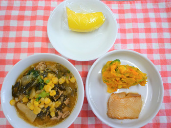 今日の給食(夏見台幼稚園・保育園)2018.10.22 鮭のちゃんちゃん焼き