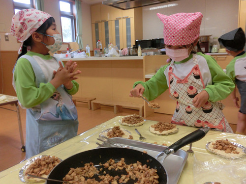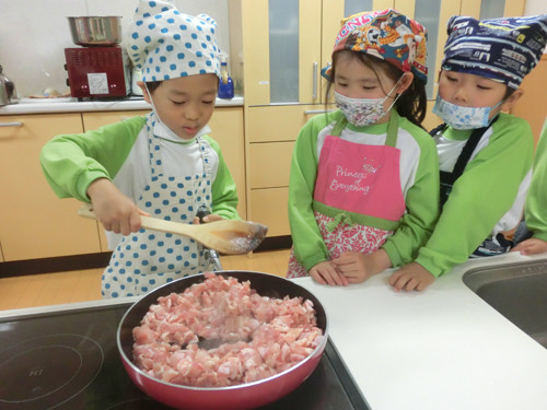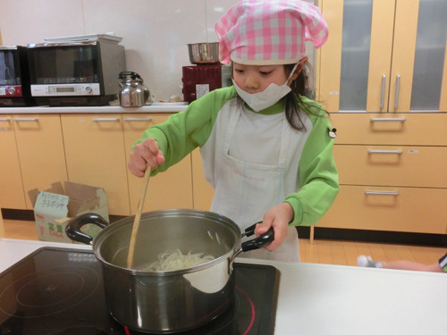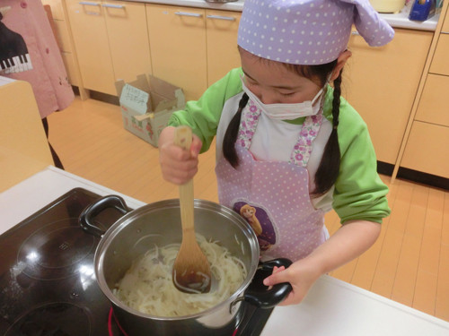 今日はすずらん組年長さんがキッズクッキングを行いました。
