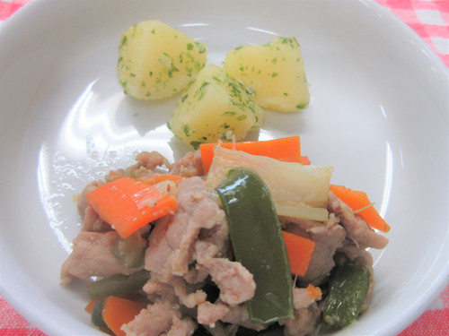 今日の給食(夏見台幼稚園・保育園)2019.8.26 鶏のママレード煮
