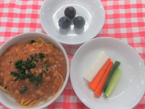 今日の給食(夏見台幼稚園・保育園)2019.8.22 スパゲッティミートソース