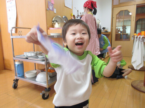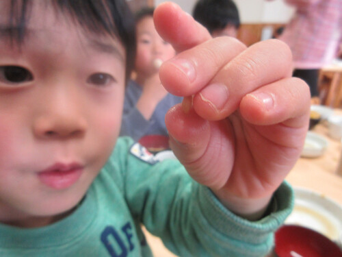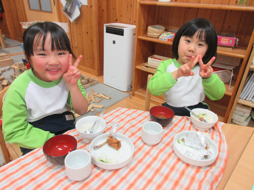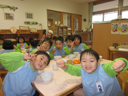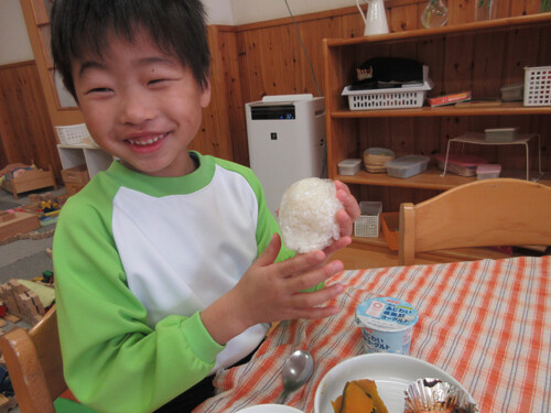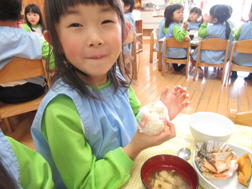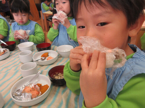 日曜日の12月22日は冬至です。冬至とは一年で一番昼が短く、夜が長い日です。冬至には、「かぼちゃ」を食べて「ゆず湯」に入る!が有名ですね。ということで、今日の給食はかぼちゃの甘煮でした。そして、たんぽぽ組はお米とぎとおにぎりづくりをしました。5月の田植えから行った米作りの集大成でした♪
