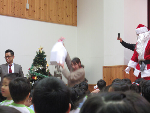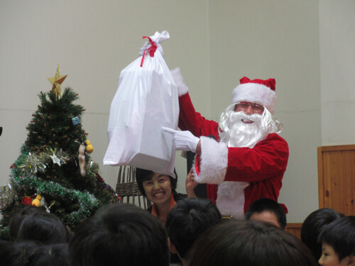 和太鼓コンサートがありました。その後、サンタクロースの登場です!