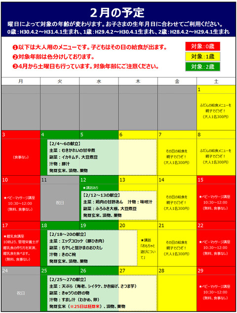 親子登園広場「なつみの森」2月スケジュールアップしました。