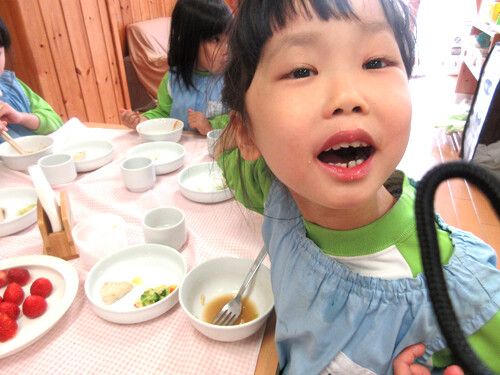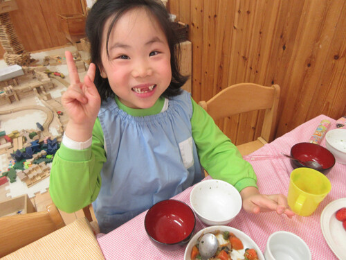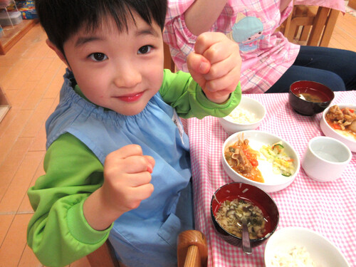 こども達は一段と明るく、元気に「おいしー!」と笑顔いっぱいで食べていて、とても元気をもらいました。