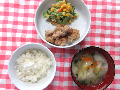 今日の給食(夏見台幼稚園・保育園)2020.3.27 鶏の生姜焼き