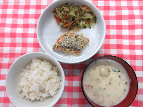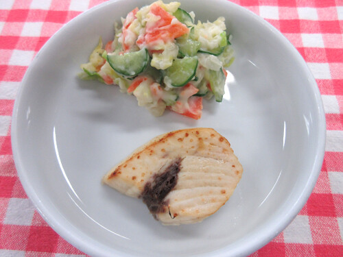 今日の給食(夏見台幼稚園・保育園)2020.3.30 鮭の西京焼き
