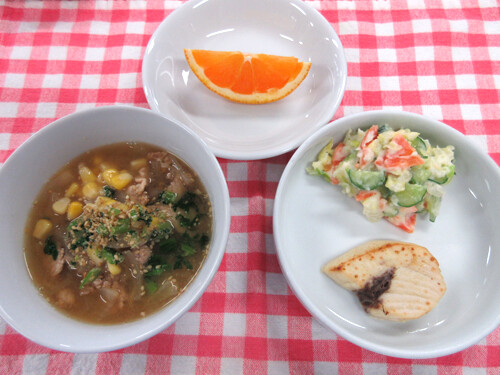 今日の給食(夏見台幼稚園・保育園)2020.3.26 鉄板焼き