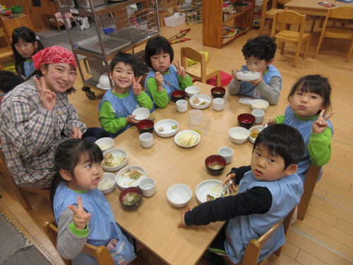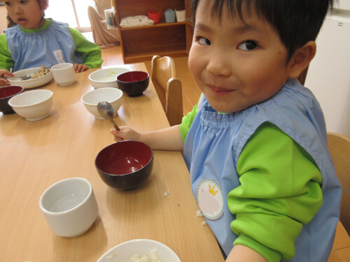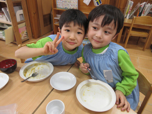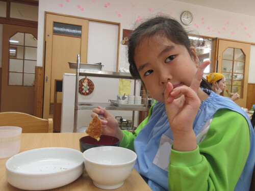 卒園児のみんなも、小学校でもしっかり給食食べてね!