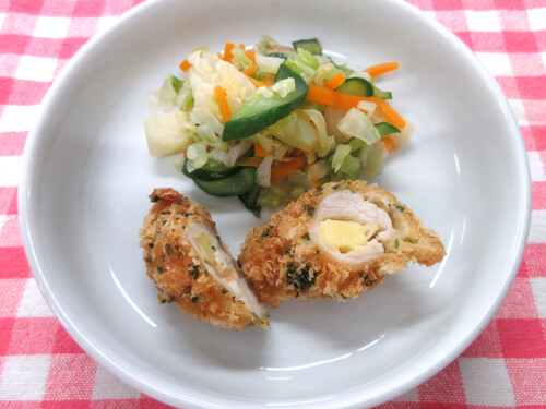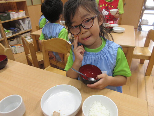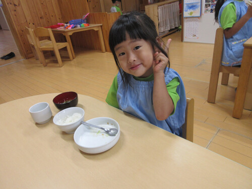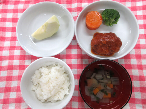 園のハンバーグは、つなぎのパン粉に牛乳を含ませています。