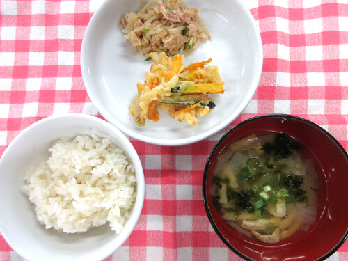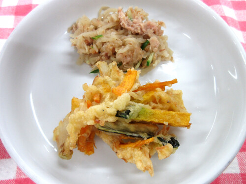 そこで今日の給食は野菜がたっぷり入ったかき揚げにしてみました。