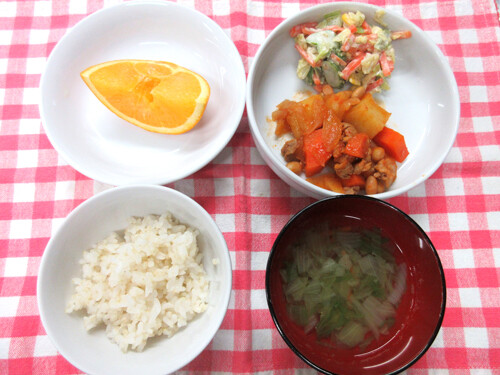 材料の納品の関係で献立変更しました。