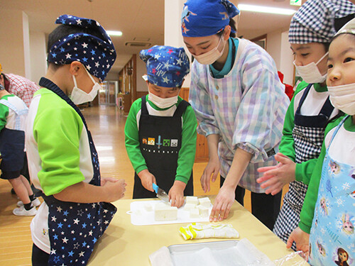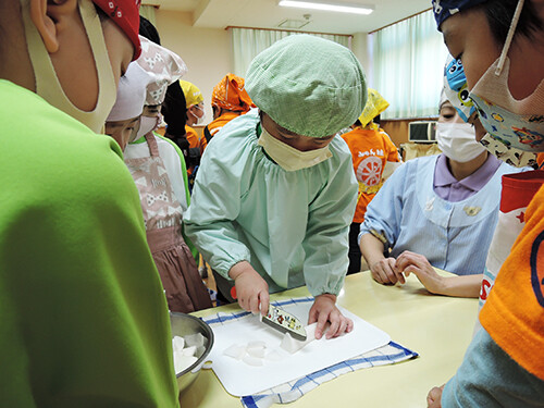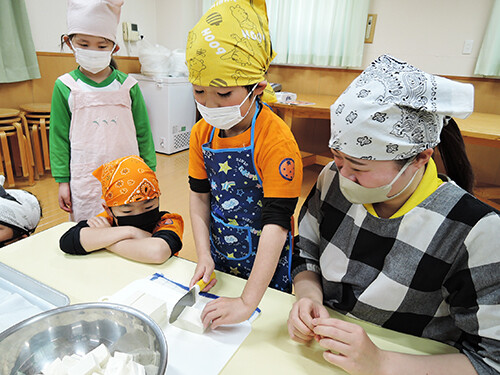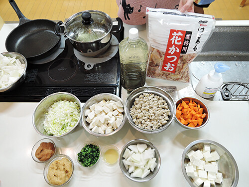 こども達が丁寧に切ってくれた人参・大根・豆腐、