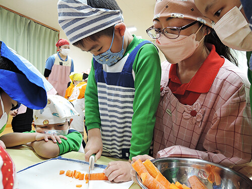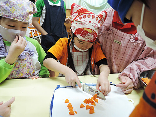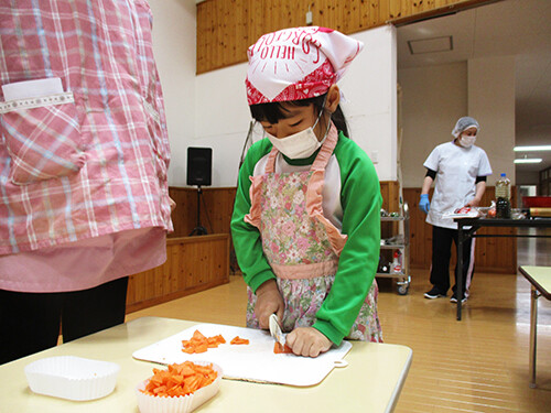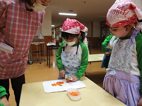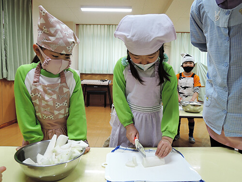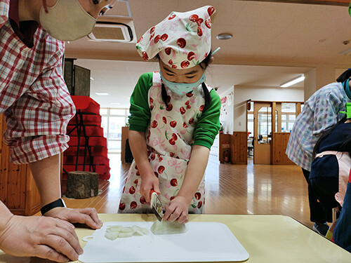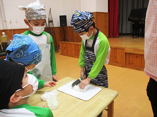 今日は年長さんが豚汁作りを行いました。