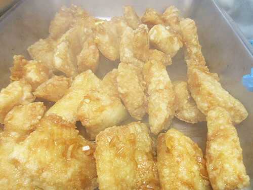 シュンユイとは、揚げたカレイ(白身魚)をネギ醤油ダレに絡めた一品です。