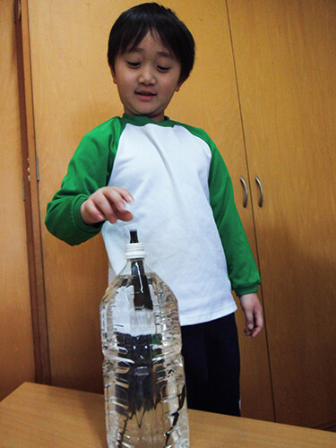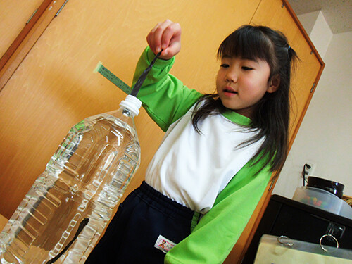 前々日から各クラスで仕込んだ昆布だし(ペットボトルに水と昆布をいれたもの)は、