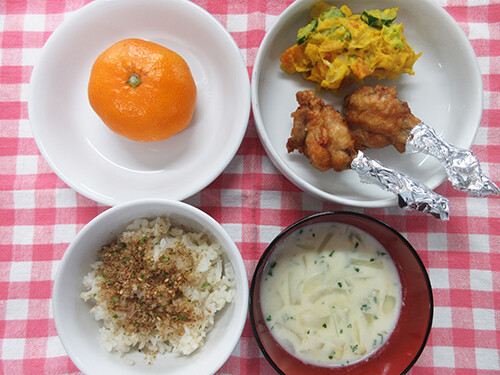 今日の給食(夏見台幼稚園・保育園)2024.12.20 骨付き唐揚げ