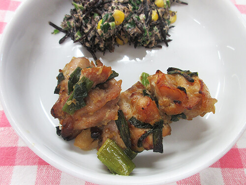 韓国風焼き鳥は、にんにく、生姜、醤油、ごま油で漬け込んだお肉をオーブンで焼きました。