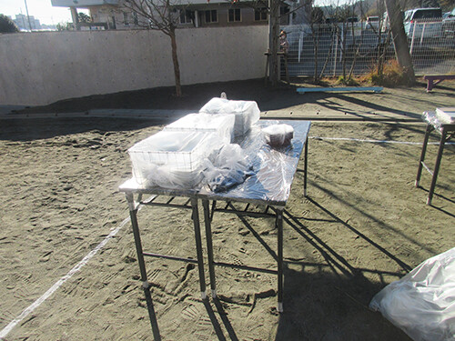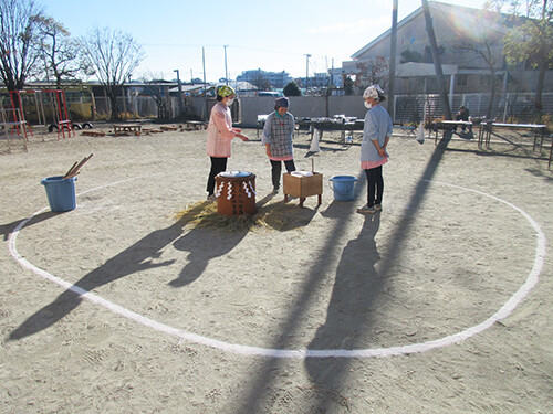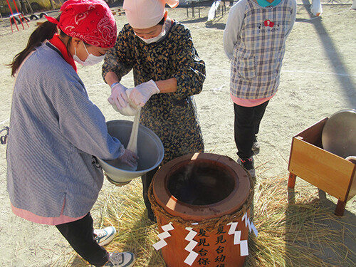 天気が良く、園庭でお餅を楽しみました。