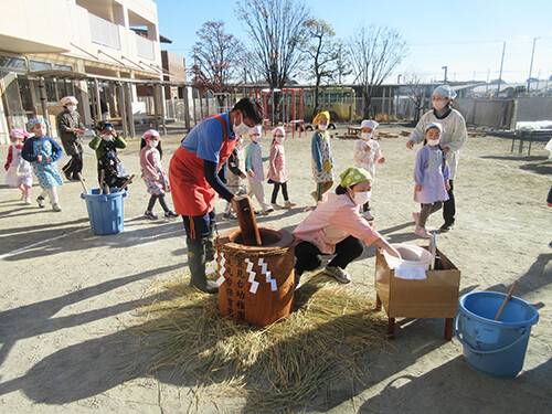 今日の給食(夏見台幼稚園・保育園)2024.12.18 鉄板焼き&もちつき