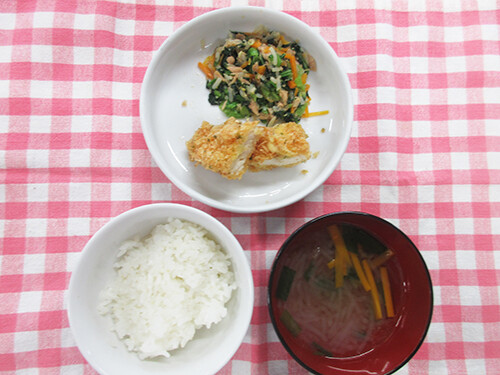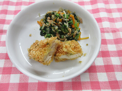今日の給食(夏見台幼稚園・保育園)2025.7.23 ささみのチーズフライ