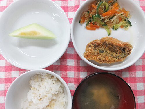 今日の給食(夏見台幼稚園・保育園)2025.7.30 アジフライ