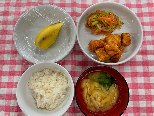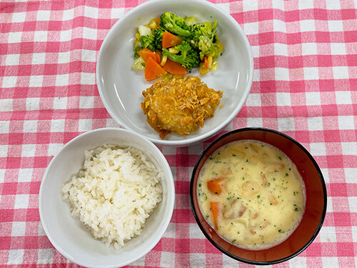 今日の給食(夏見台幼稚園・保育園)2026.2.13 鶏のフレーク焼き