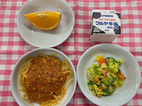 今日の給食(夏見台幼稚園・保育園)2026.2.10 スパゲティミートソース