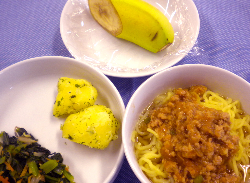 2010.8.23 今日の給食・おやつ「ジャージャー麺」(夏見台幼稚園・保育園)