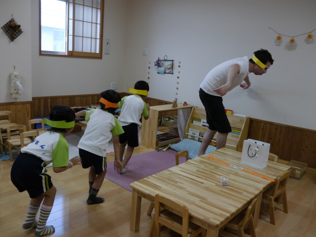 海の生き物やそこで使う道具などをレッスン中に行いました。