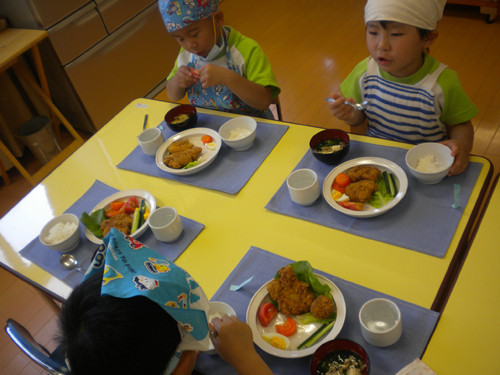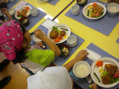 自分たちで作ったアツアツのコロッケはいつもの給食以上においしかったようです♪