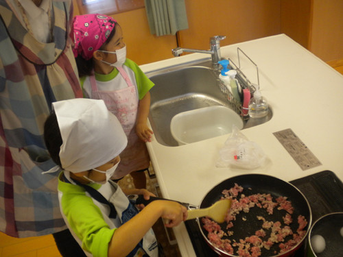 ひき肉や玉ねぎを炒める、コロッケを成型する・・・などやること盛り沢山でした!