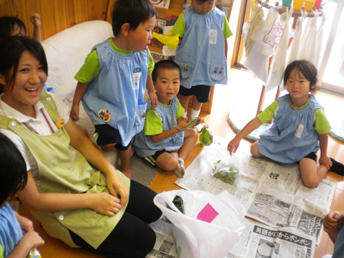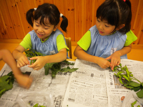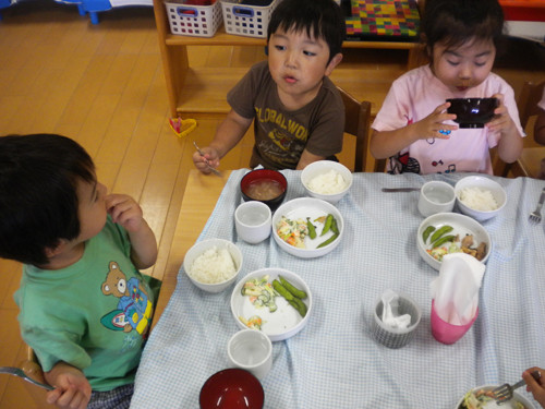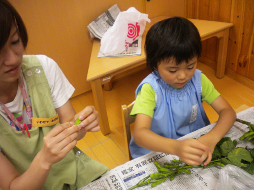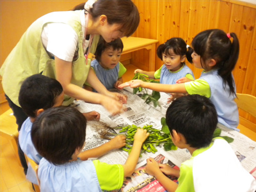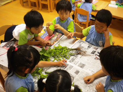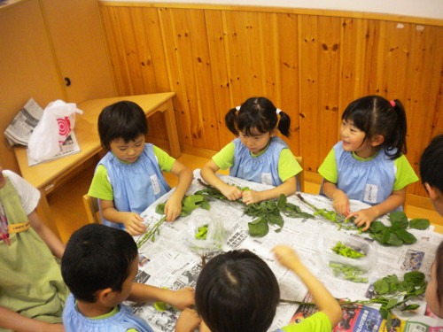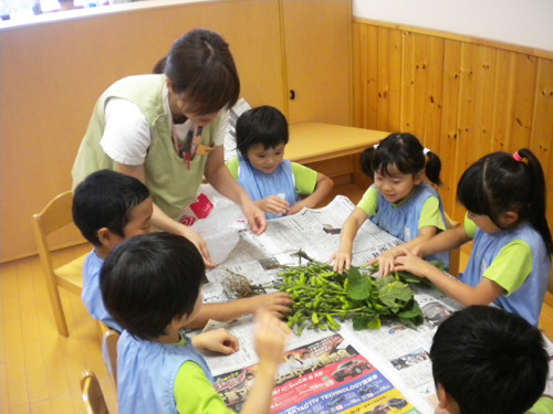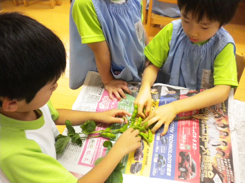 今日の枝豆は、昨日年長さんがさやから一つ一つ丁寧にとってくれたものです。