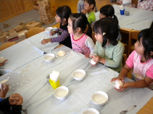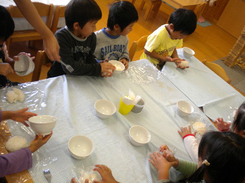 今日はみかん組のご飯炊き&おにぎり作りでした。
