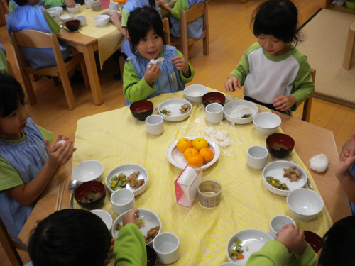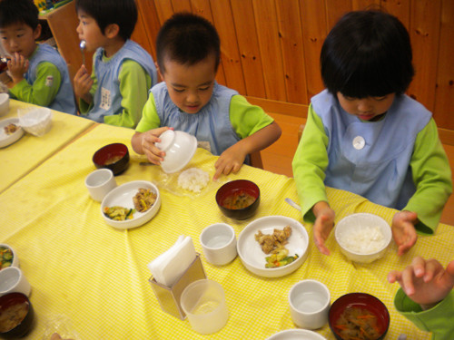今日の給食(夏見台幼稚園・保育園) 2012.11.1 鶏のみそ焼き